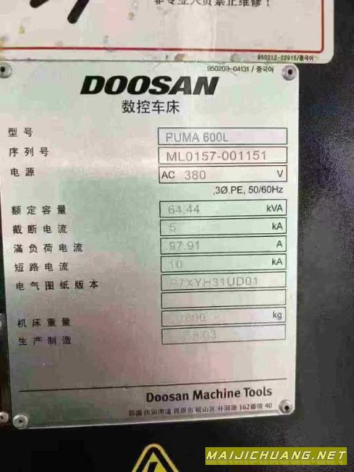 | 韩国原装进口斗山PUMA600L数控车床,16寸液压卡盘,12. |